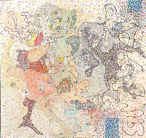 Mes [ IN ] UTILES décembre 2025 / Installation de perles et de peintures 2020 avait ouvert une période propice à faire en l’état, avec ce que j’étais et ce que j’avais : la lassitude d’être « utile »…, la nécessité de maintenir et créer des liens et… des perles en profusion. Depuis, les perles ont été reliées sans dessein et je vous invite aujourd’hui à découvrir ces formes spontanées. Cet état m’a aussi permis de créer de nouvelles toiles et m’a amener à en faire « revivre »… à les regarder autrement grâce à une intervention manuelle « répétitive » et des matériaux de récupération. J’ai nommé cette recherche Mes [IN] UTILES. "Regarde autrement et regarde encore… Change d’angle, prends une loupe… Prends ton temps… Nous sommes [ IN ]… Nous sommes à l’intérieur de nos têtes, de nos vies, de nos passions… Nous sommes dans le Monde, dans la Nature… Rien n’est à l’extérieur de nous, c’est nous qui sommes [dedans]… Karine Girault