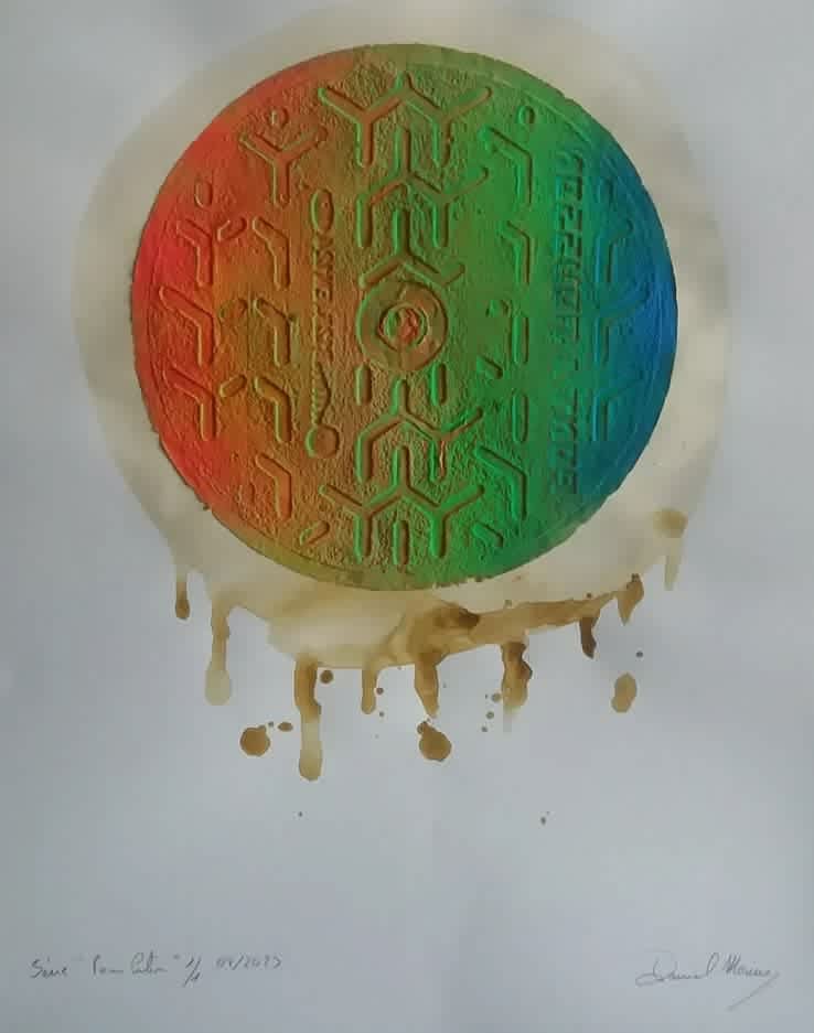 Autodidacte, j'ai trouvé ma propre démarche artistique et travail artistique sur l'extrême de l'art, et non dans l'art, par l'utilisation d'un objet contemporain pour montrer la finitude de l'Homme. Voici ma démarche: Daniel MOURRE montre les dérives des sociétés humaines et la nécessité d'un changement rapide afin d'éviter d’inévitable situations extrêmes, et se confronter à la finitude programmée de l’Homme provoquée par une nature saccagée. Pour représenter l’impact de l’homme dans son environnement, l’artiste a créé les séries propagations et imprégnations, à l’instar de César et de ses séries compressions et expansions. Pour soutenir sa démarche, contrairement à l’artiste Christo qui emballait les œuvres pour les montrer, il déballe une bouche d’égout déposée sur une toile estampillée de son empreinte rouillée pour en montrer l’absence. Pour cela, Daniel MOURRE se positionne comme un archéologue d’un futur très lointain qui découvrirait des traces et des fossiles de l'ère anthropocène. La bouche d'égout, qui symbolise pour lui la civilisation humaine industrielle, est ainsi déclinée à travers différentes techniques. Du fait de son antinomie, l’objet permet de mettre en avant les extrêmes constatés dans notre Société. La conséquence est l’apparition de rouille qui résulte de la destruction du métal, socle de notre Société contemporaine. On peut voir ses œuvres comme les empreintes fossilisées d’une ère industrielle qui a perdu le sens et s’est anéantie. Les pièces qu’il donne à voir, rejoignent, dans leur totale contemporanéité, une sorte de rappel d’art primitif, un nouvel art premier post effondrement. Le public est interpellé par l’esthétique des œuvres qui est à la hauteur de la noirceur du constat ; lorsque le visiteur s’attarde sur la technique employée, alors l’absolue cohérence de l’ensemble s’impose à eux. Article ARTENSION mai/juin n° 179, 2023 par le critique d'art Christian NOORBERGEN